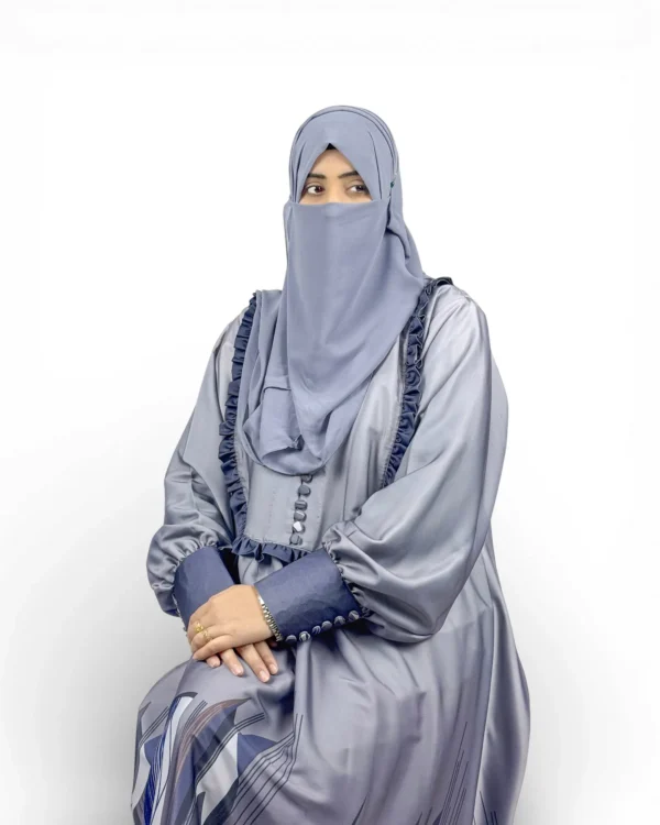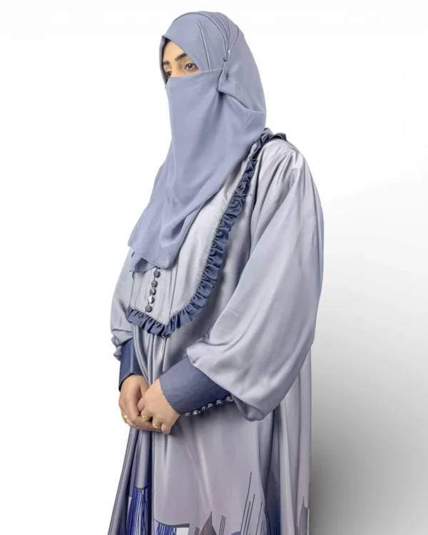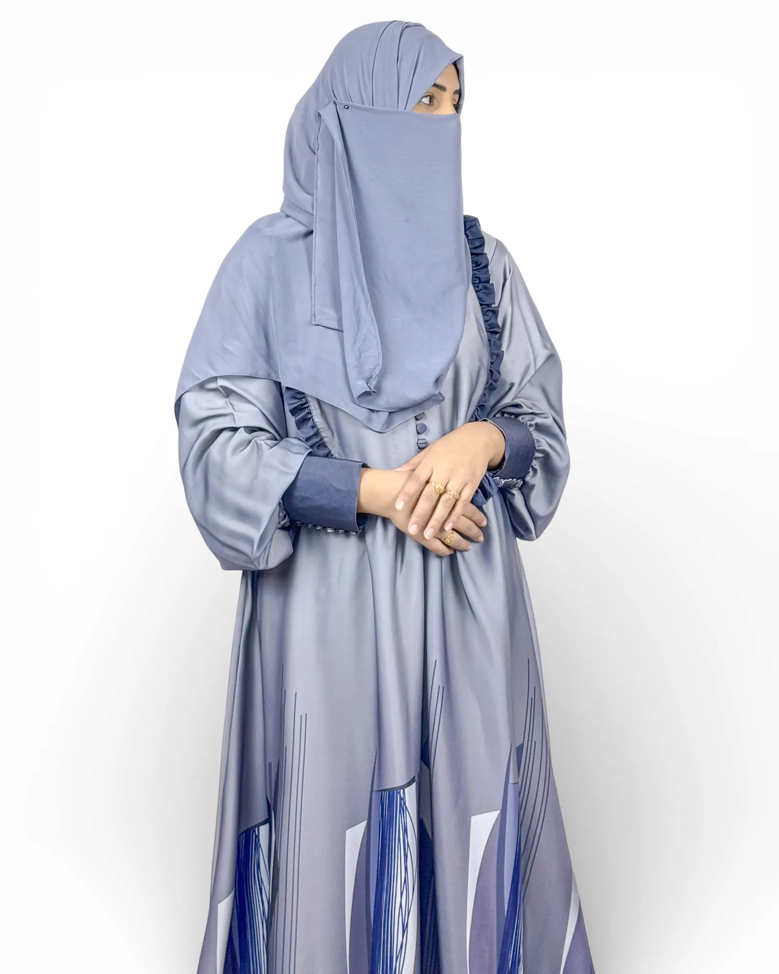 The Azure Mist is designed for the woman who appreciates contemporary art and modest fashion. Unlike standard Abayas found in the market, this piece is made from a specially imported premium material that provides a superior drape and a soft, high-quality finish.